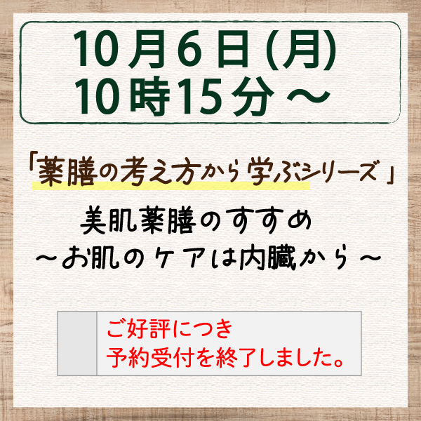乾燥が気になり始める季節。薬膳で身体の中からお肌をきれいにしてみませんか?