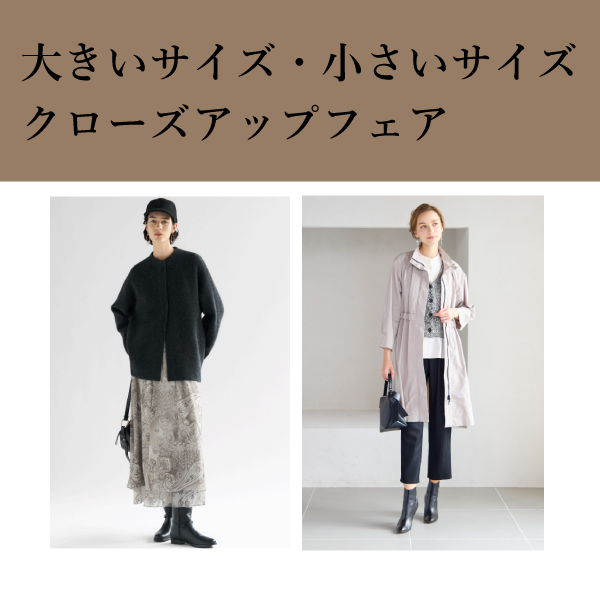 大きいサイズ(13号以上)と小さいサイズ(5号以下)をお探しのお客様向けのフェアです。