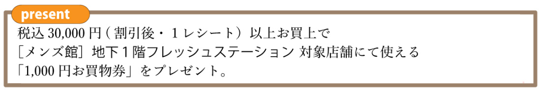 通常よりも取扱いショップがわかりやすく、また税込30,000円以上お買上げでプレゼントもご用意。
