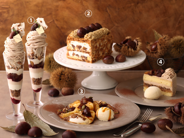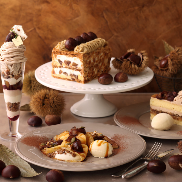 しっとり焼き上げたスポンジ、マロンカスタードとマロン・シャンティの2種クリーム、甘栗のシロップ漬けをかさね、渋皮栗をトッピングした贅沢な味わいです。