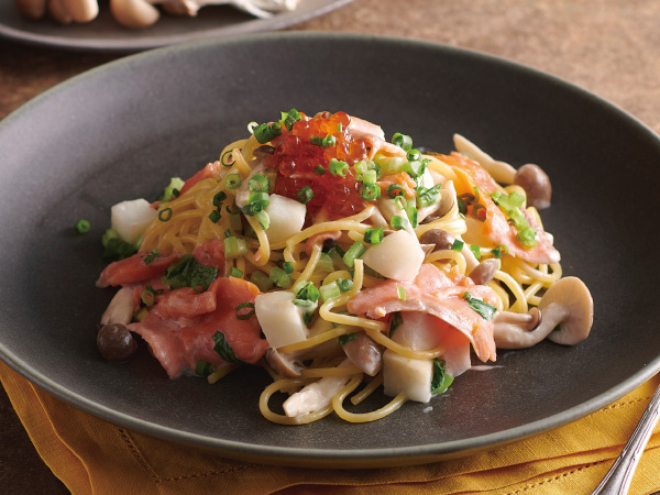 イクラとスモークサーモンのクリームスパゲッティ 柚子胡椒風味