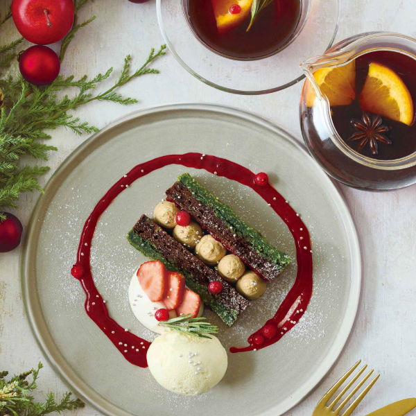 キャロっトラペとローズマリーポテト、ベリーのティラミスのクリスマス限定セット。