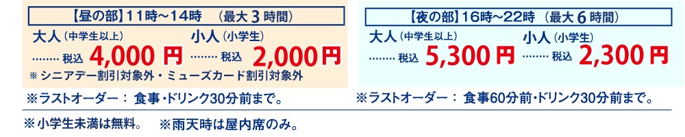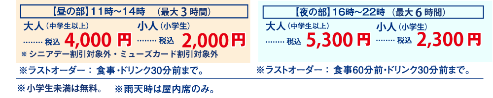 ※雨天時は屋内席のみ。※小学生未満は無料。
