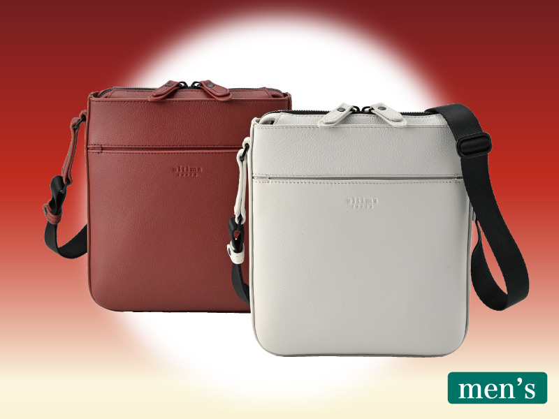 タウンユースにおすすめの、レザーショルダーバッグ。ジャケットスタイルとの相性も抜群。