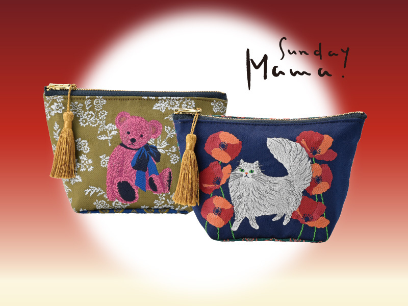 京都の伝統工芸「西陣織」でかわいい動物を表現した、オリジナル柄ポーチ。