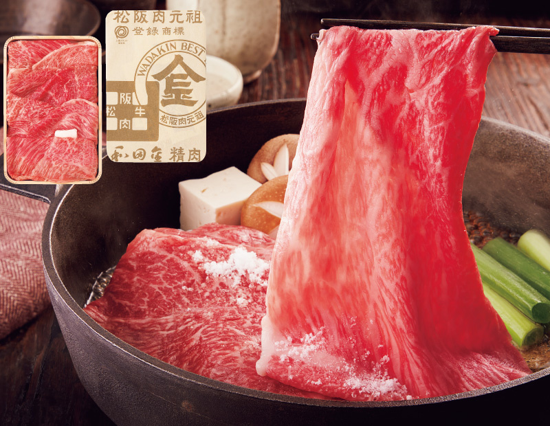 明治11年の牛肉店創業以来、上質な松阪牛を平切りにして食べる「すき焼き」のスタイルを確立し、大評判に。現在もその当時のおもてなしの心を引き継ぎ、豊かな旨味と牛脂の甘みに加えきめ細やかな高い香りを醸す肉質を求めて、自社牧場で牛を育てています。【松阪肉元祖和田金】の代名詞にふさわしく、濃厚な肉の旨味と香り、豊かに広がる風味をご堪能いただける「すき焼き」に最適な上肉折詰をご用意しました。