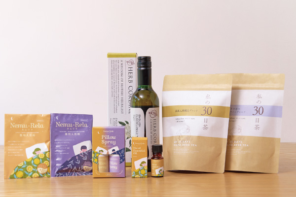 ●内容/30日茶×2、ハーブコーディアル360㎖、入浴剤25g×2、エッセンシャルオイル10㎖、ピロースプレー20㎖×2