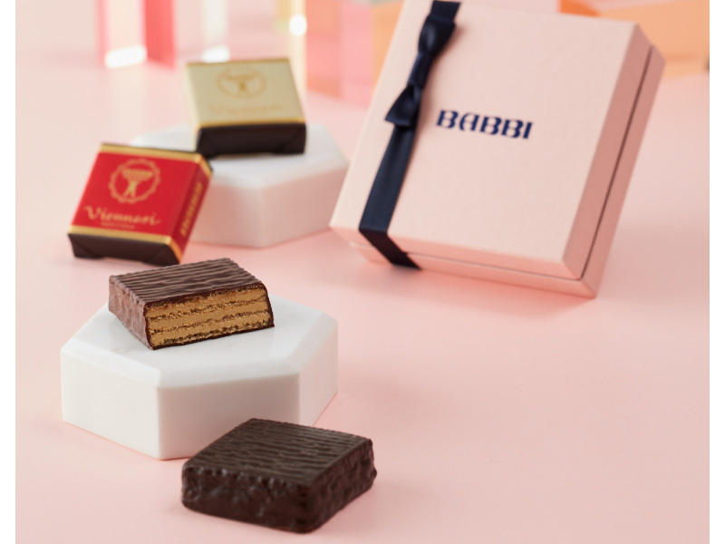 軽い食感のウエハースをチョコレートで包んだ、冬の定番チョコレートウエハース「ヴィエネッズィ」。ヨーロッパでは一流ホテルのウェルカムスイーツとして採用されるロングセラー。ピスタチオ、バニラ、ヘーゼルナッツ、チョコレート、4つのフレーバーを詰め合わせました。