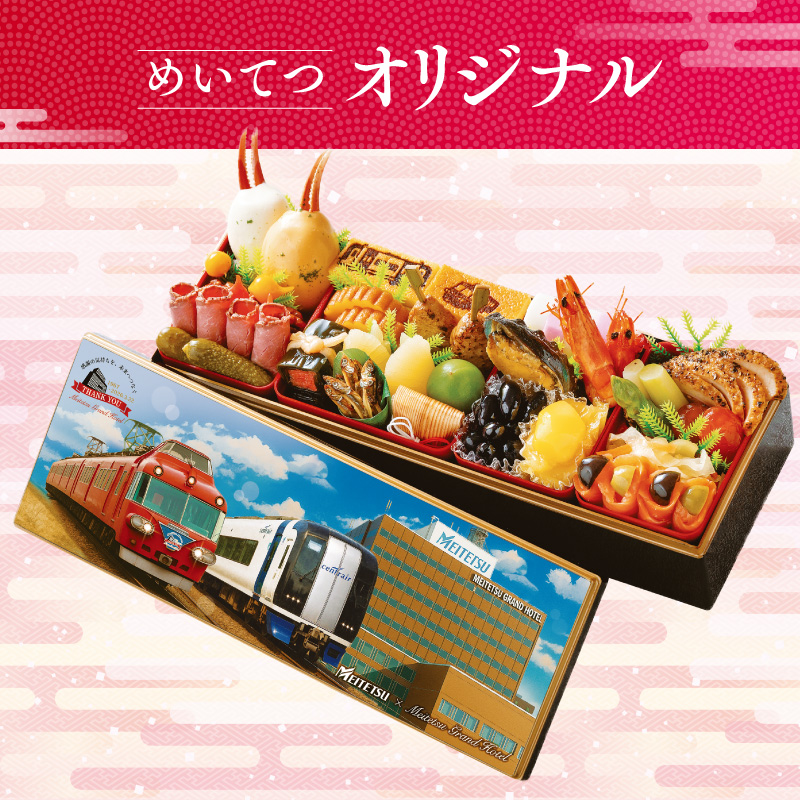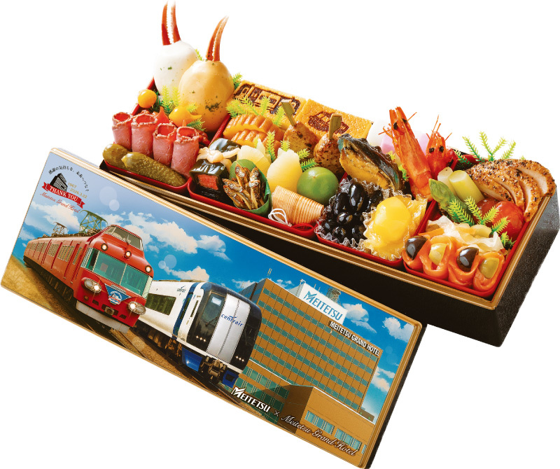 毎年大好評の名鉄電車おせち!今年のおせちはホテル開業当時に、活躍していた7500系と、現在人気の2000系の車両デザインを施した特別仕様。