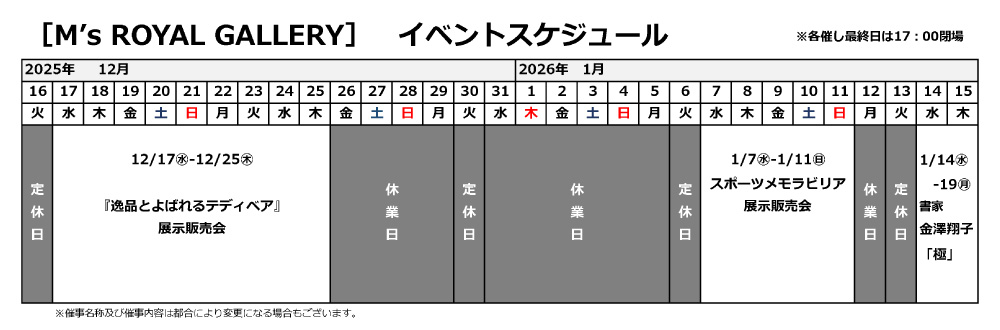 ※最終日は17時閉場。