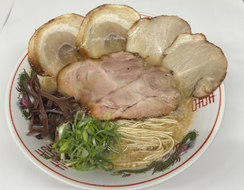 3種類のチャーシュー(バラ肉、モモ肉、肩ロース)が乗ったボリューム満点で豪華な一杯。9月に開催されました秋の全国逸品うまいものまつりの目玉商品として大変好評頂きましたので1日限定50杯販売させて頂きます。名鉄百貨店でしか食べる事の出来ない一杯を是非2025年の最後の一杯として食べて頂けたら幸いです。
