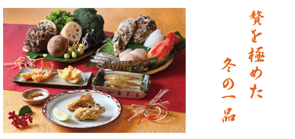 この時期だけの季節の食材を使った天ぷらを取り揃えております。